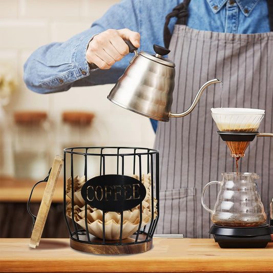 QUALLON Coffee Pod Holder, Large Capacity Coffee Basket Kcup Storage, Wooden Base Coffee Filter Holder Decor for Kitchen Countertop Coffee Bar for Pods & Capsules (Acacia coffee filter holder)